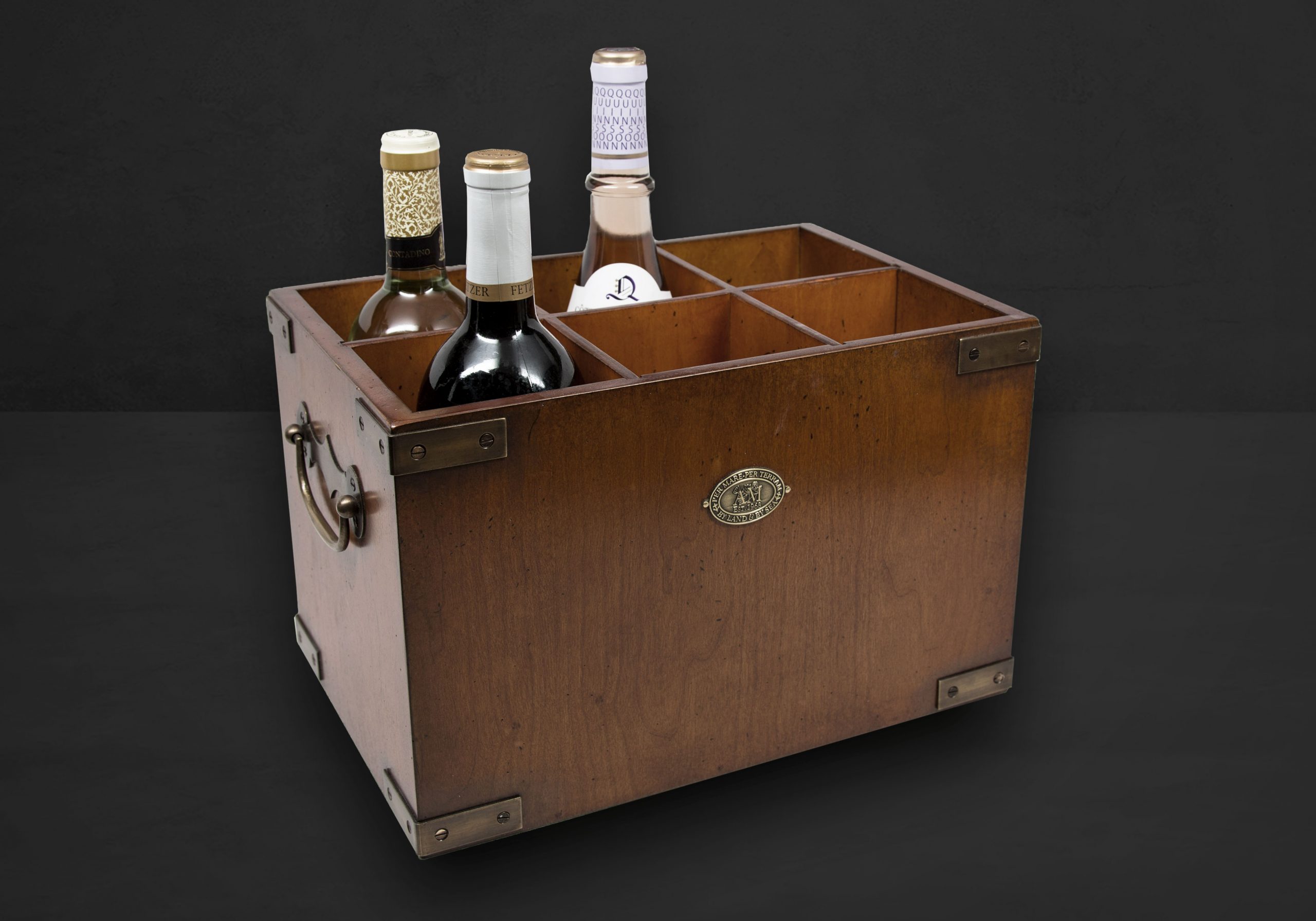 Ein schönes Accessoire für die Hausbar und ein Eyecatcher dazu ist die Six-in-One Holzbox von Authentic Models. Langlebig aus massivem Holz hergestellt und an allen acht Ecken mit Messingbeschlägen geschützt bietet die Box sechs Flaschen einen exklusiven Platz. Zum Transport sind an den beiden Kopfseiten stabile Messinggriffe angebracht. Die Six-in-One Box 101 begeistert durch die robuste Machart und die antik bearbeitete Oberfläche. Ein „Must-Have“ für jeden Hobby Barkeeper!