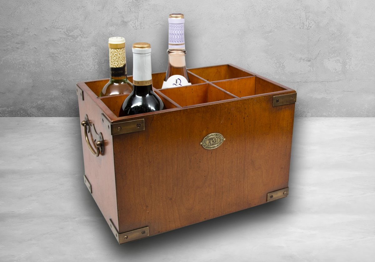 Ein schönes Accessoire für die Hausbar und ein Eyecatcher dazu ist die Six-in-One Holzbox von Authentic Models. Langlebig aus massivem Kirschbaumholz hergestellt und an allen acht Ecken mit Messingbeschlägen geschützt bietet die Box sechs Flaschen einen exklusiven Platz. Zum Transport sind an den beiden Kopfseiten stabile Messinggriffe angebracht. Die Six-in-One Box 101 begeistert durch die robuste Machart und die antik bearbeitete Oberfläche. Ein „Must-Have“ für jeden Hobby Barkeeper!
