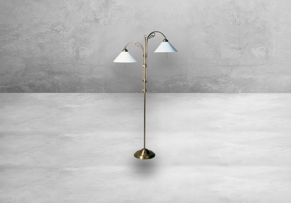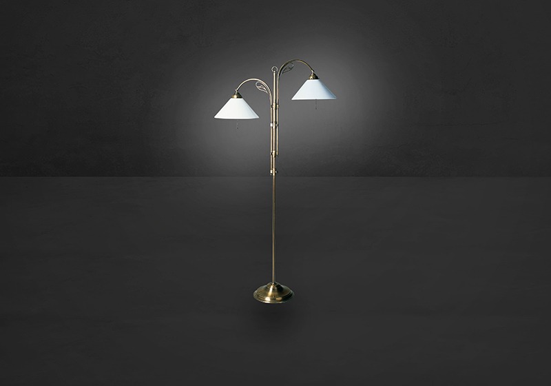 Im Foto ist die Stehlampe 532 in Messing antik-patiniert abgebildet.